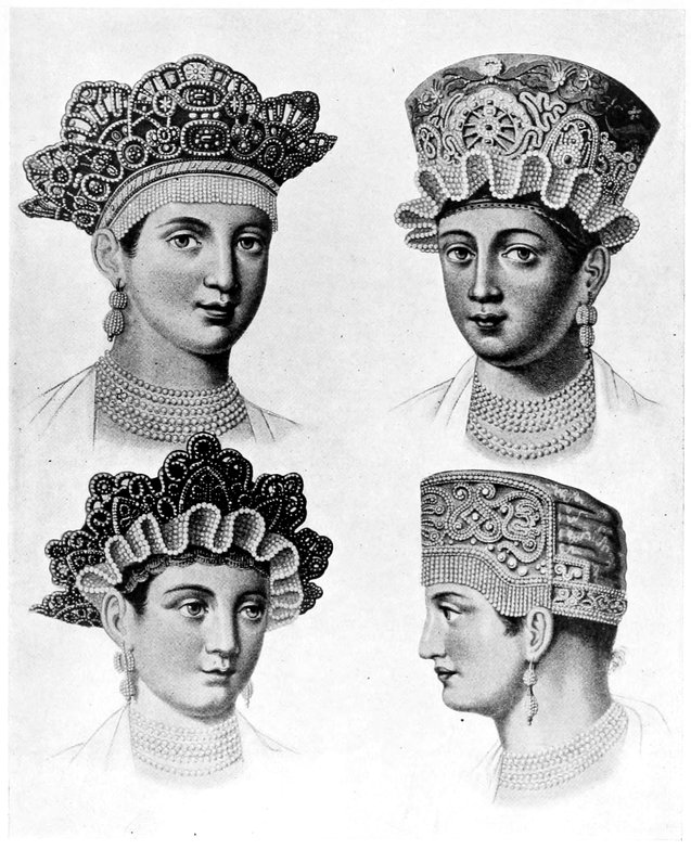Russian Boyard ladies of the seventeenth century, showing caps and other ornaments of pearls | 184 |