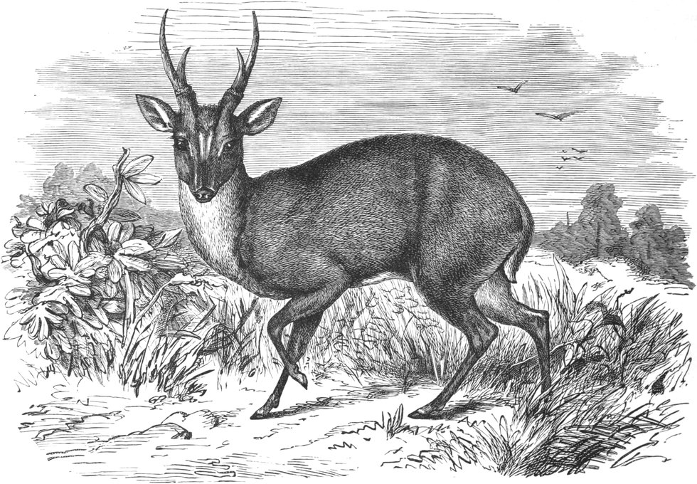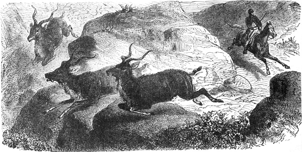 | THE STEINBOKS: KLIPSPRINGER, OUREBI, STEINBOK, GRYSBOK, MADOQUA—THE BUSH-BUCKS—Appearance—Distinctive Marks—THE FOUR-HORNED ANTELOPES—Peculiarity in the Chikarah—THE WATER ANTELOPES: NAGOR, REITBOK, LECHÈ, AEQUITOON, SING-SING, WATER-BUCK, POKU, REH-BOK—THE ELAND—Beef—Appearance—Captain Cornwallis Harris’ Description—Hunting—Scarcity—THE KOODOO—Appearance—King of Antelopes—ANGAS’ HARNESSED ANTELOPE—THE HARNESSED ANTELOPES: GUIB—BUSH BUCK, OR UKOUKA—Appearance—Pluck—THE BOVINE ANTELOPES—THE BUBALINE—HARTEBEEST—BLESBOK—BONTEBOK—SASSABY—THE GNU—Grotesque Appearance—Habits—BRINDLED GNU—THE CAPRINE ANTELOPES—SEROW—Ungainly Habits—GORAL—CAMBING-OUTAN—TAKIN—MAZAMA—THE CHAMOIS—Distribution—Appearance—Voice—Hunted—THE ORYXES—BLAUBOK—SABLE ANTELOPE—BAKER’S ANTELOPE—ORYX—BEISA—BEATRIX—GEMSBOK—ADDAX | |