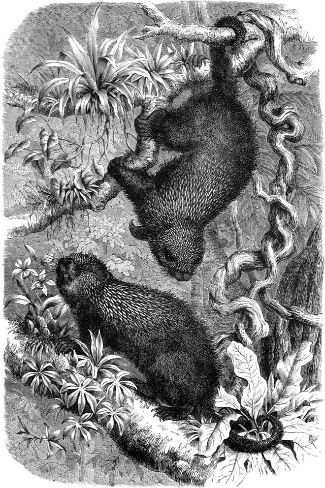 | The South American Forests—Discovery of the Sloth—How it derived its Name—Peculiarities of Dentition—Food—Fore Limbs and Fingers—Hind Limbs and Heel—Other Modifications of Structure—Kinds of Sloth—Waterton’s Captive Sloth—Habits of the Animal—Burchell’s Tame Sloths—Manner of Climbing Trees—Disposition—Activity among Trees—Naturalists’ Debate about Anatomy—Probable Conclusion regarding it—Skeleton—Vertebræ—the Rudimentary Tail—Most Distinctive Skeletal Characters—Arm, Wrist, Hand, Fingers, Claws—Mode of Walking—Great Utility of the Claws—Face of Sloth—Skull—Teeth—Classification—TARDIGRADA—BRADIPODIDÆ—Genus BRADYPUS—Characteristics—Genus ARCTOPITHECUS—Characteristics—CHOLŒPODIDÆ—THE COLLARED SLOTH—Description—Skull Bones—Habits—Circulation of the Blood—Rete Mirabile—THE AI—THE UNAU—Appearance—Skull and Teeth—Skeleton—Interesting Anatomical Features—Stomach—HOFFMANN’S SLOTH—Description—Habits | |