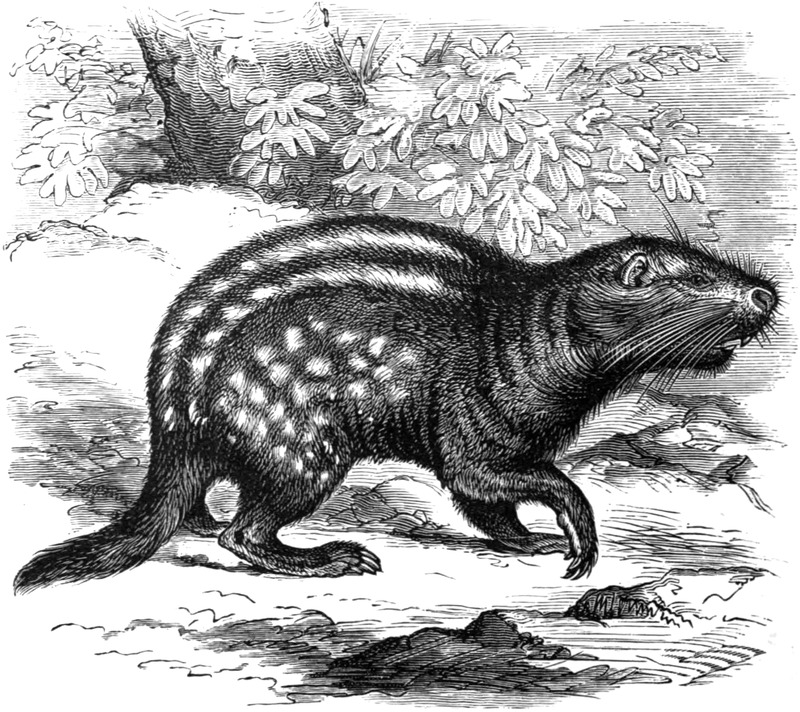 | SPALACIDÆ, OR MOLE RATS—Characteristics of the Family—Habits—Food—THE MOLE RAT—Distribution—Description—THE CHESTNUT MOLE RAT—THE NAKED MOLE RAT—THE STRAND MOLE RAT—Description—Habits—THE CAPE MOLE RAT—GEOMYIDÆ, OR POUCHED RATS—Characteristics of the Family—The Cheek-pouches—THE COMMON POCKET GOPHER—Distribution—Description—Burrowing—Runs—Subterranean Dwelling—THE NORTHERN POCKET GOPHER—HETEROMYINÆ, OR POUCHED MICE—Difficulties as to Position—Characteristics—PHILLIPS’ POCKET MOUSE—Where Found—Description—THE YELLOW POCKET MOUSE—THE LEAST POCKET MOUSE—DIPODIDÆ, OR JERBOAS—Organisation for Jumping—Characteristics—Distribution—THE AMERICAN JUMPING MOUSE—Description—Characters peculiar to itself—Habits—THE TRUE JERBOAS—Characters—THE JERBOA—Distribution—Habits—Mode of Locomotion—THE ALACTAGA—THE CAPE JUMPING HARE—THE PORCUPINE-LIKE RODENTS—OCTODONTIDÆ—Characteristics—Sub-Family CTENODACTYLINÆ—THE GUNDI—THE DEGU—Description—Habits—THE BROWN SCHIZODON—THE TUKOTUKO—THE CURURO—THE ROCK RAT—Sub-Family, ECHINOMYINÆ—THE COYPU—One of the Largest Rodents—Description—Burrows—Habits—Mother and Young—THE HUTIA CONGA—THE HUTIA CARABALI—THE GROUND RAT | |