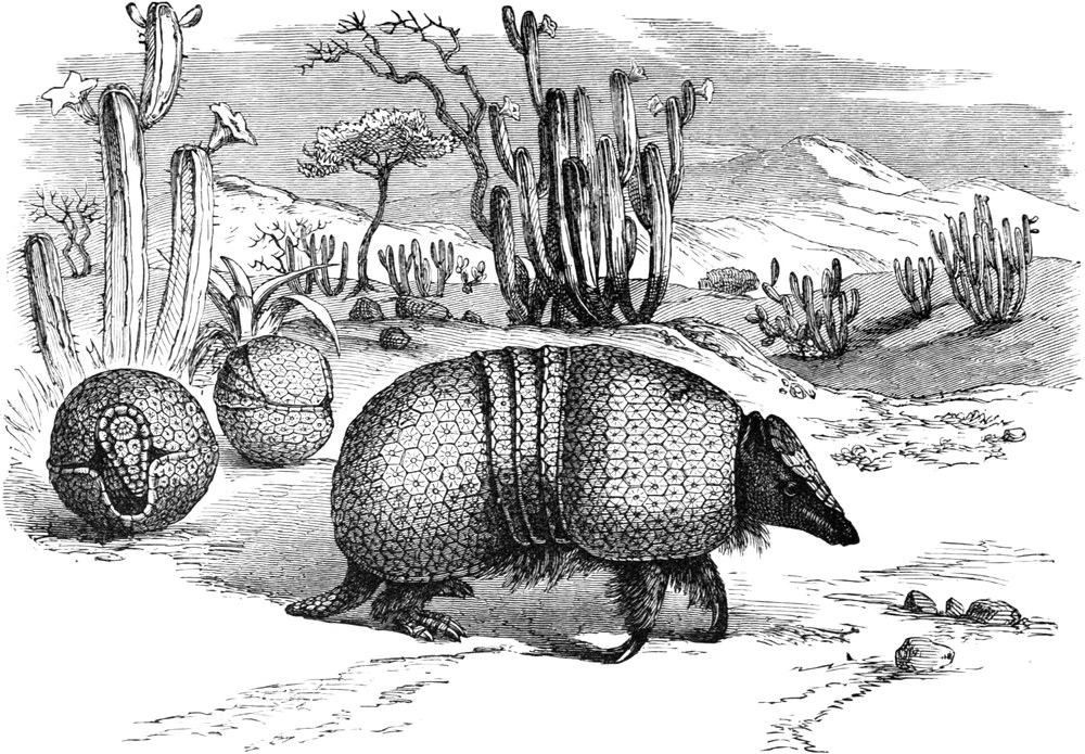 | The Armour-plates—How the Shields are formed—Their connection with the Body—Description of the Animals—Mode of Walking—Diet—Skeleton—Adaptation of their Limbs for Burrowing—Classification—THE GREAT ARMADILLO—Appearance—Great Burrower—THE TATOUAY—THE POYOU, OR YELLOW-FOOTED ARMADILLO—THE PELUDO, OR HAIRY ARMADILLO—THE PICHIY—THE PEBA, OR BLACK TATOU—THE MULE ARMADILLO—THE BALL ARMADILLO—Dr. Murie’s Account of its Habits—Description—The Muscles by which it Rolls itself up and Unrolls itself—THE PICHICIAGO—Concluding Remarks: Classification of the Order, Fossil Edentates, the Allied Species of Manis in South Africa and Hindostan | |