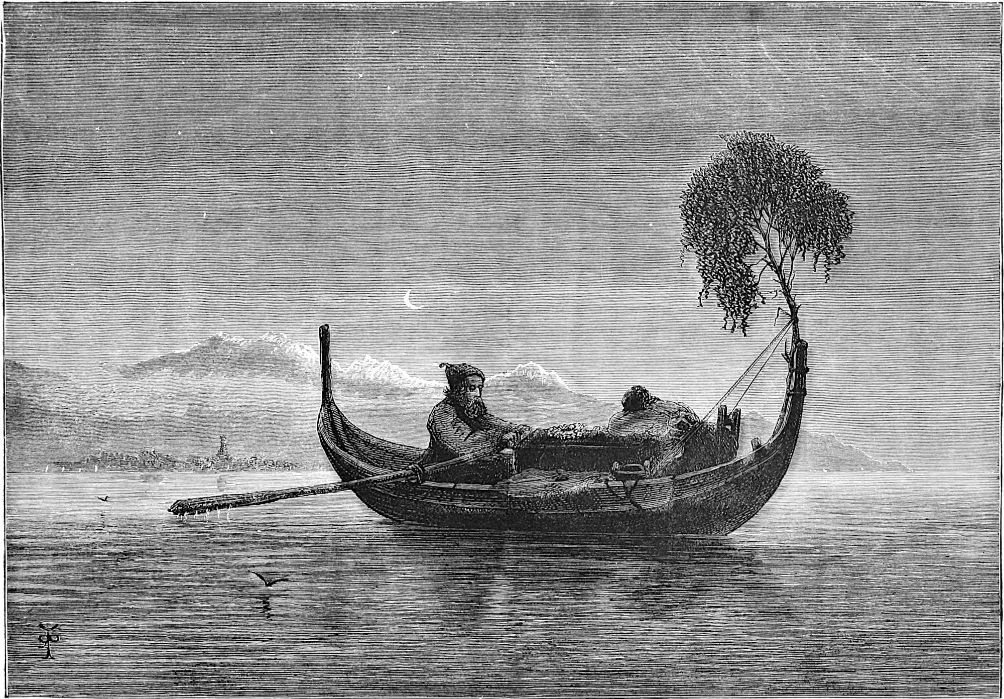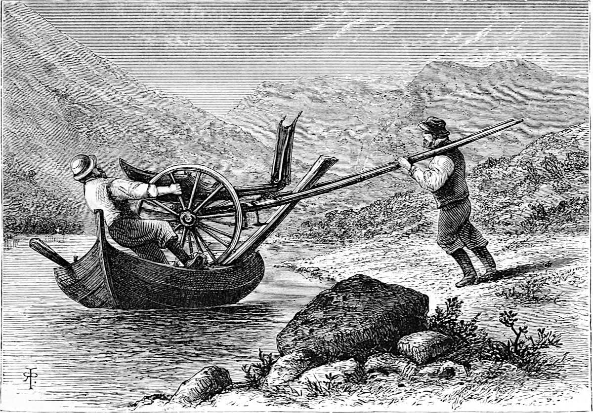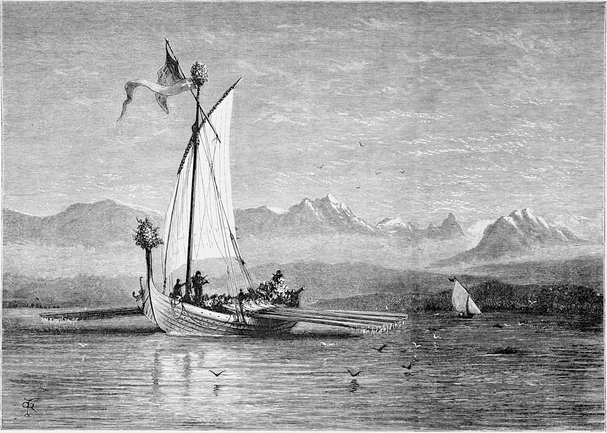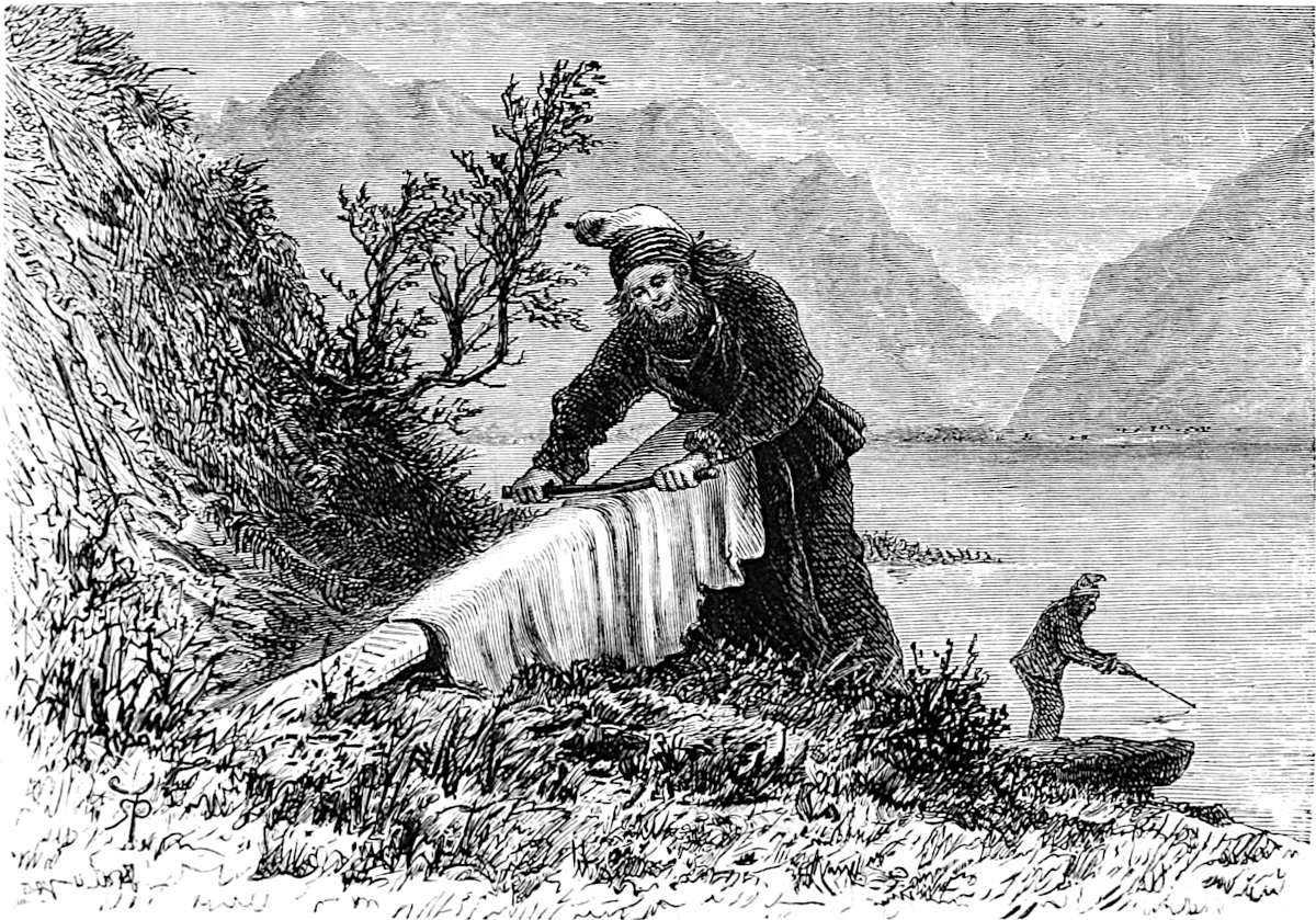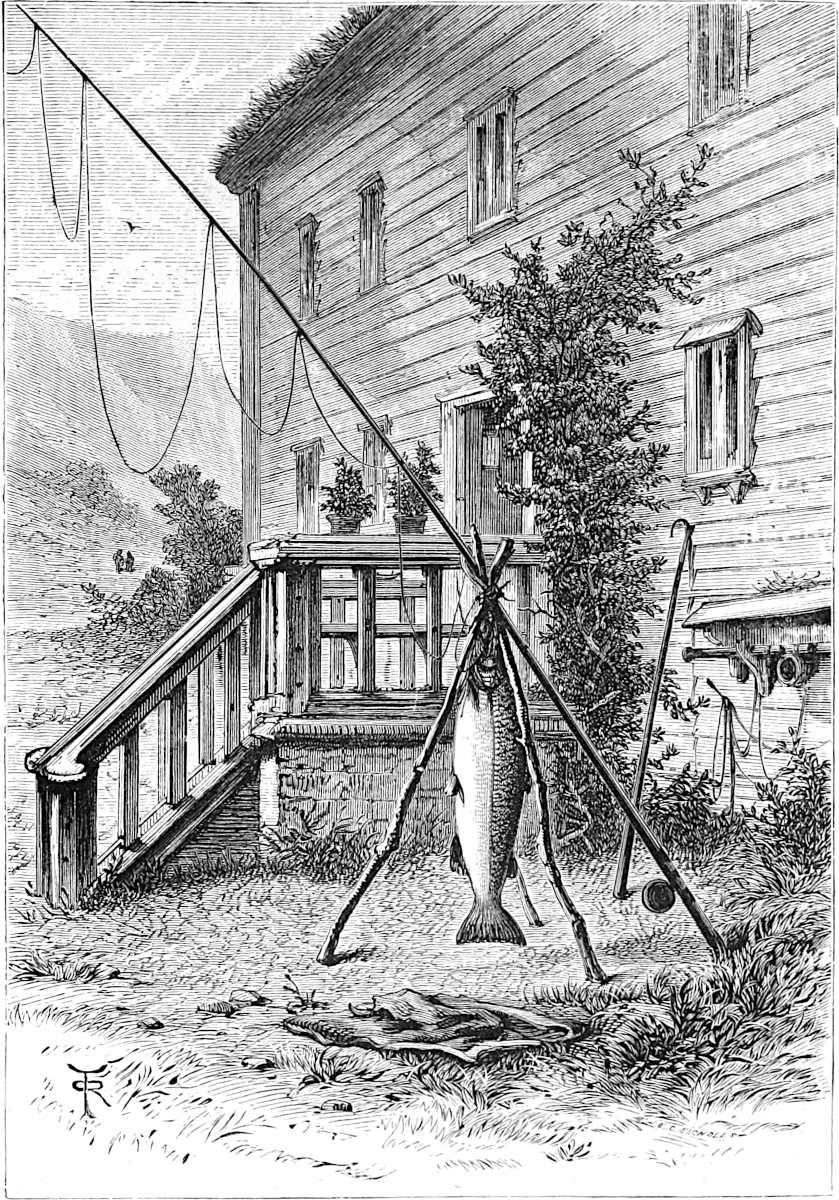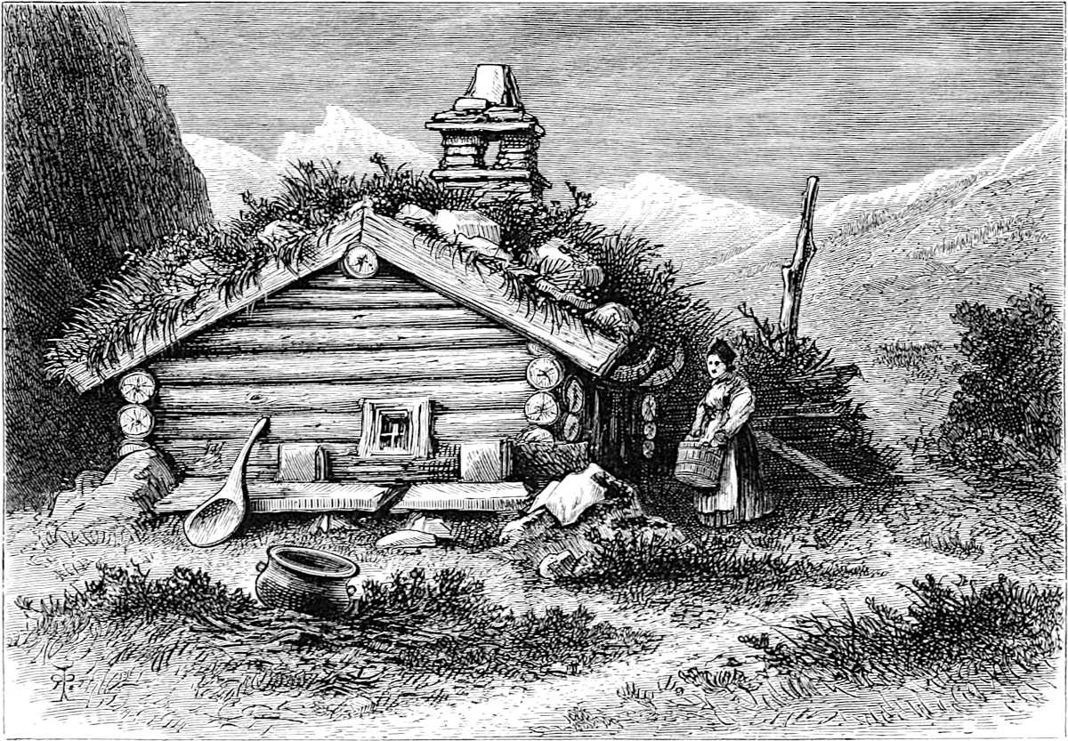 Little is said here of the cities of Christiania, Bergen, and Trondhjem, as our path lies in the open, the fjeld life, sæters, peasants, and sport. Our delight is to live out of the present century in fresh air and simplicity, where trolds might cross our path, where we might see the lovely Huldre, the beauty who had the unfortunate appendage of a cow’s tail, which, when exposed to view, was the signal for her to vanish into thin air, or where Odin and Thor had had great jagt, and killed bears, elks, gluttons, and wolves. The scenes we14 longed for were those in which pagan rites had been carried out with all the grandeur of mighty warriors and priests worthy of Valhalla; wherein Vikings, after deeds of valour, were laid low, and buried with great solemnity and becoming pomp in their own war vessels, with their treasure, their arms, and their hunting-gear about them, waiting for the call to glory.