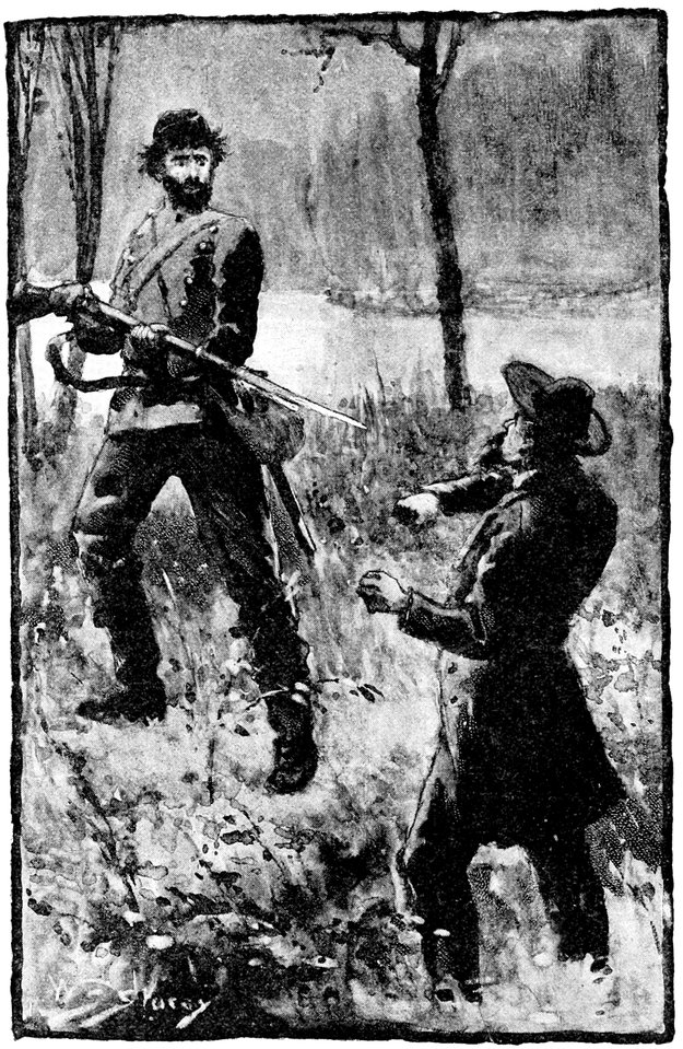 For an instant the colonel paused. It appeared that one chance more was to be given him. Then his good angel turned away and left him, and a black lie dropped from his lips. His voice became dangerously calm. ‘I do not know that I am bound to make explanations to you, Captain Peters,’ he said; ‘but I have done so out of consideration for your extreme youth and inexperience. It may be enough for you to know that I carry the provost-marshal’s order, countersigned by General Shields, and dated 1 A.M. to-day, to hang these fellows as soon as possible after their capture, should I succeed in taking them; and that document, sir, is not bogus like the one you have just read. Now, for the last time, will you obey orders?’