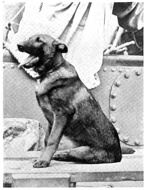 After a delightful period of calms and smooth seas the wind breezed up again, and the Quest, awaking like a startled horse from long sleep, renewed her old-time vigour and enthusiasm. The wind was fairly ahead, and with engines going their hardest we could make but little more than a knot an hour. A dreary passage promised, but after a while the wind freed, and under sail, with engines stopped, we ramped along in 225 heartening style. But on June 9 a real tragedy occurred—Query lost the number of his mess. During the voyage he had got very cunning in the tricks of the ship and had developed excellent sea-legs, so that we never felt very much concern about him even when the Quest was playing her most fantastic tricks. I was assisting Dell to skin and cut up a Tristan da Cunha sheep—a very scraggy brute, with only about enough flesh on its bones to form a decent meal for one healthy Scout. Query, who always followed the work of the ship with sagacious interest, was absorbedly watching our gory toil when the ship gave a sickening lurch, and the poor dog, before he could brace himself into a state of readiness, slipped, clawing and scrabbling, clean over the side. I heard Jimmy crying out, and running to the poop saw Query bravely swimming in our direction; he was fully fifty yards astern. Then, as I looked, my heart aching for him, a big wave hit him and shut him from view. It was impossible to do anything for him. Had he been a man his fate must have been the same, for we were running hard before a gale, and to heave-to might easily have spelt our complete destruction; to lower a boat was impossible. Poor Query! His loss was felt very keenly by every man aboard, for there is something in the atmosphere of a ship that makes a man keen on pets, and Query was a great pet, well loved by all. I have known many dogs, but never one with so lovable a disposition as his. And so of all the medley of animals carried by the ship during her voyage only one solitary cat remained.