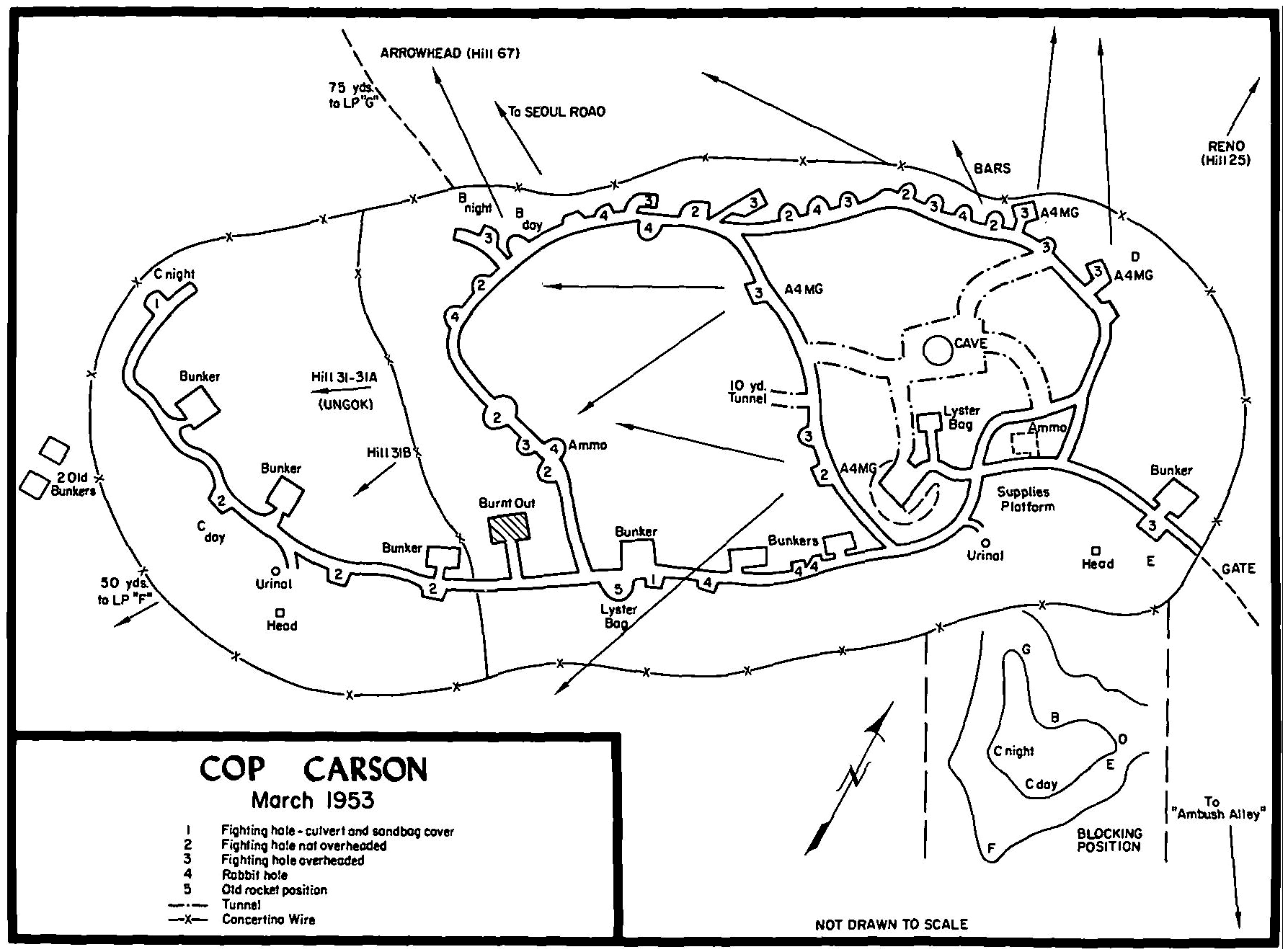 The Nevada Cities—Supporting Arms—Defense Organization at the Outposts—Chinese Attack on 26 March—Reinforcements Dispatched—Massed Counterattack the Next Day—Push to the Summit—Other Communist Probes—Three CCF Attempts for the Outpost—Vegas Consolidation Begins—Aftermath | ||