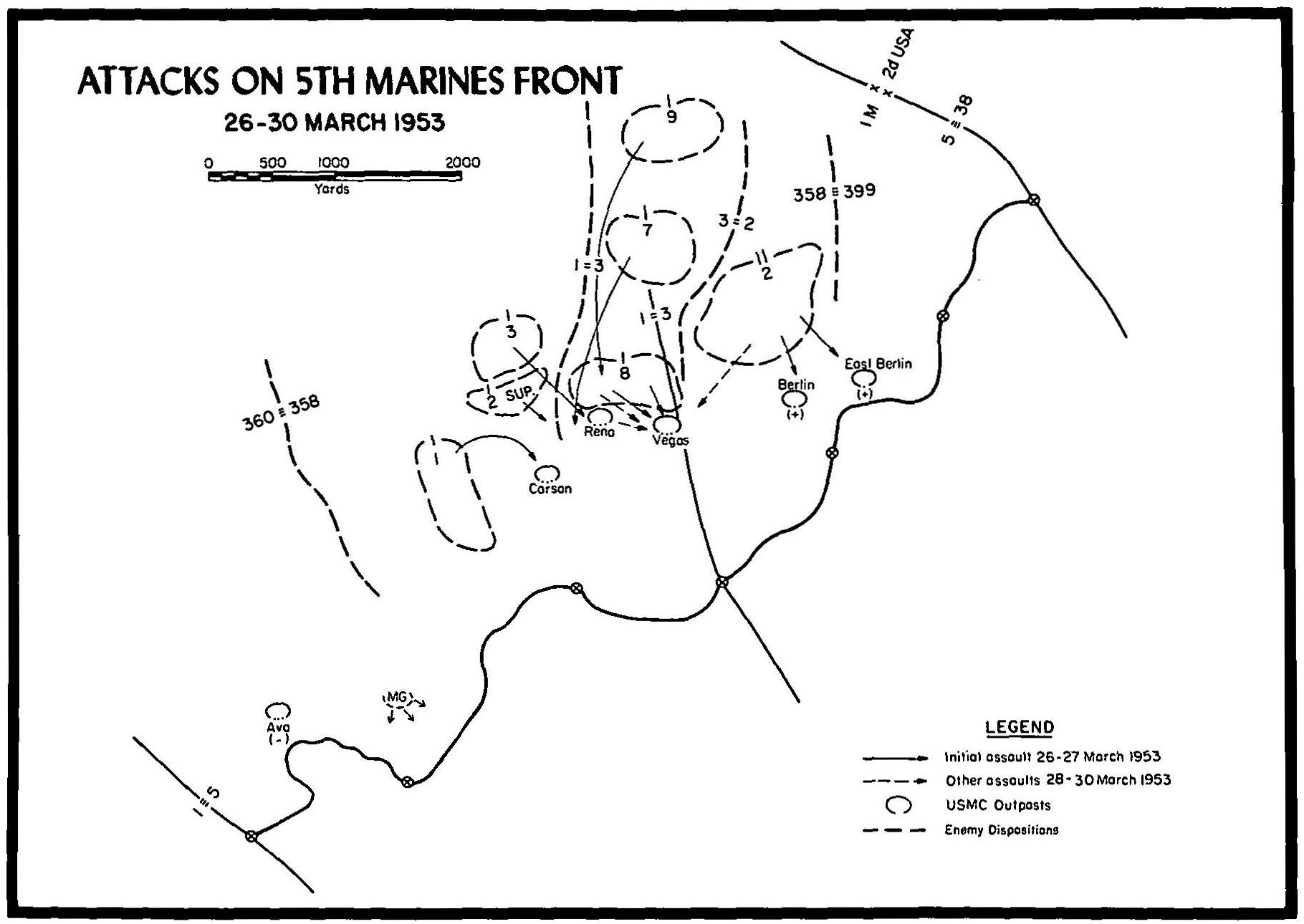 2d Battalion, 1st Marines. Command Diaries, selected dates, March 1952-October 1953.
