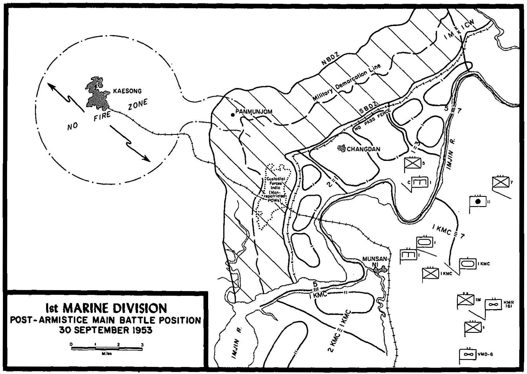 The Postwar Transition—Control of the DMZ and the Military Police Company—Organization of New Defense Positions—Postwar Employment of Marine Units in FECOM | ||