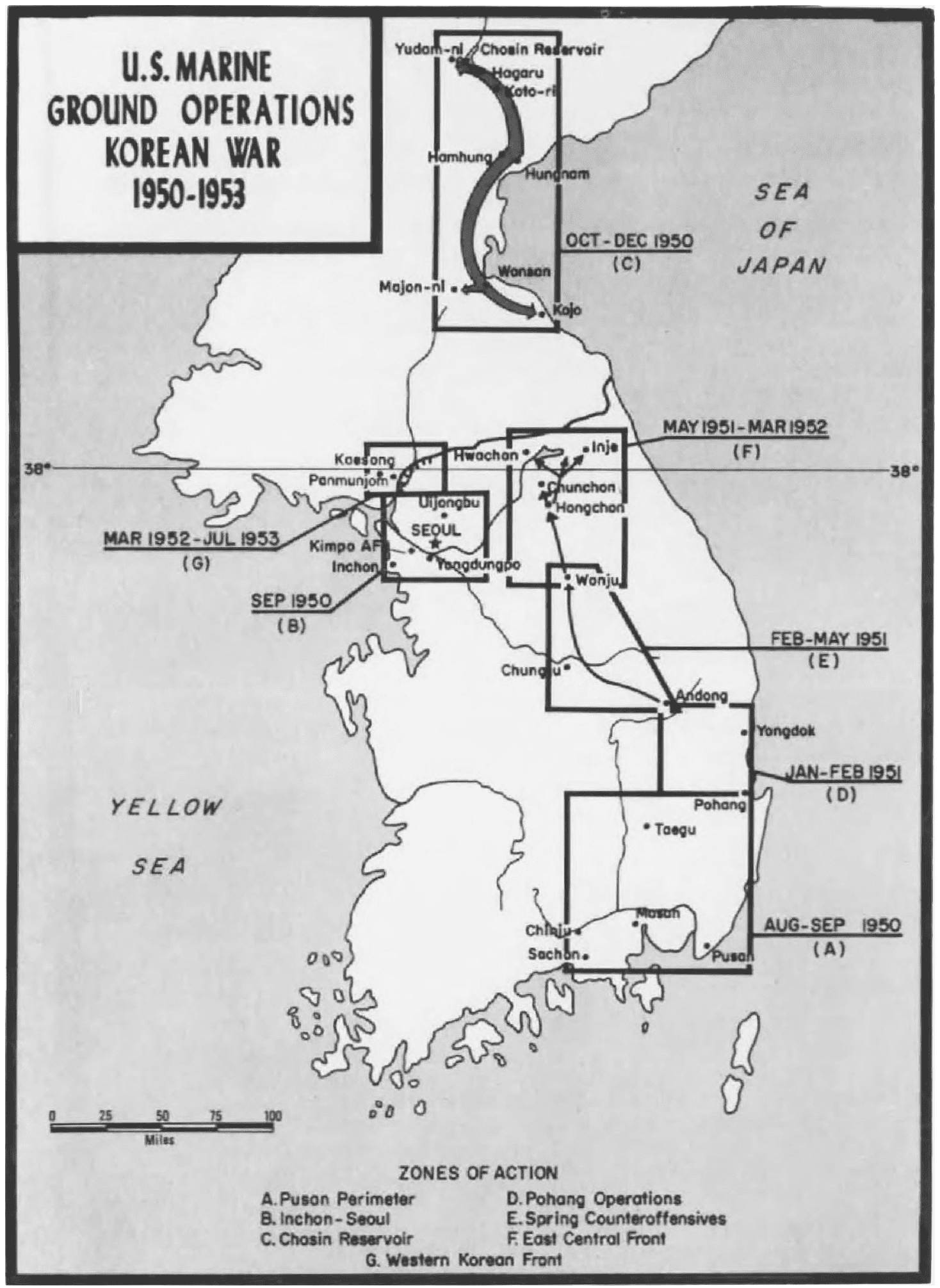 Mention the Korean War and almost immediately it evokes the memory of Marines at Pusan, Inchon, Chosin Reservoir, or the Punchbowl. Americans everywhere remember the Marine Corps’ combat readiness, courage, and military skills that were largely responsible for the success of these early operations in 1950–1951. Not as dramatic or well-known are the important accomplishments of the Marines during the latter part of the Korean War.