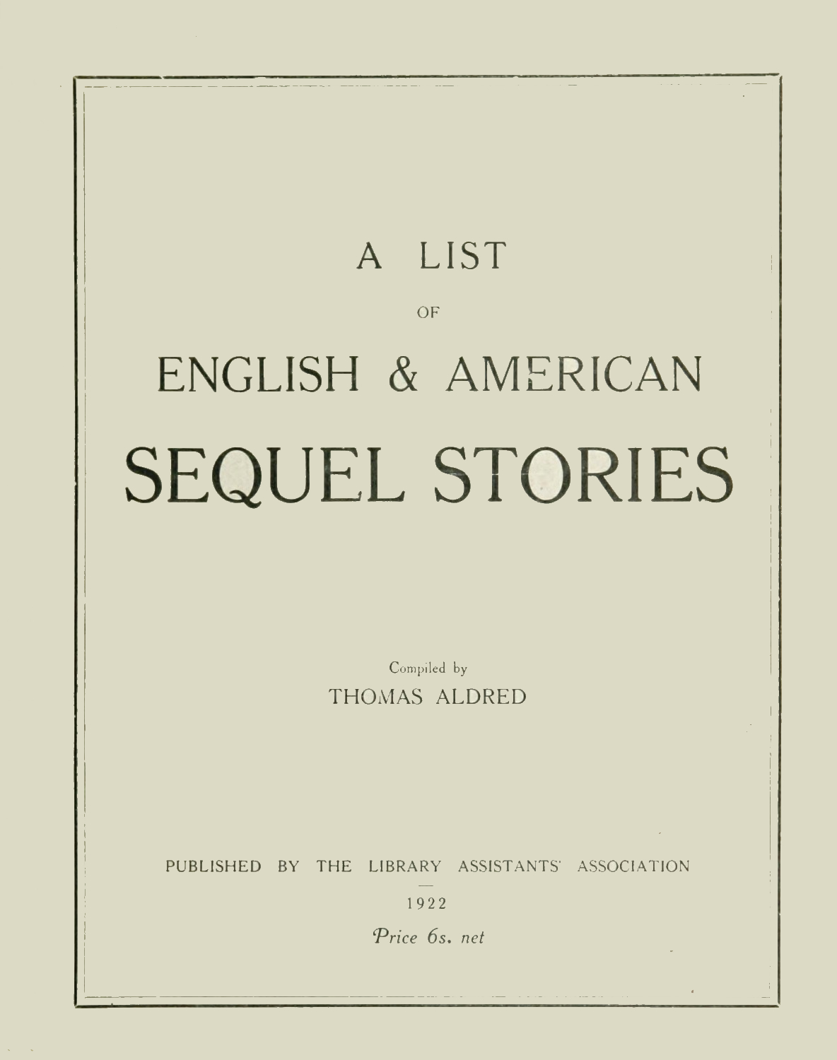 The whole of the profits arising from the sale of this reference list will be applied to the Benevolent and Orphan Fund of the Library Assistants’ Association.