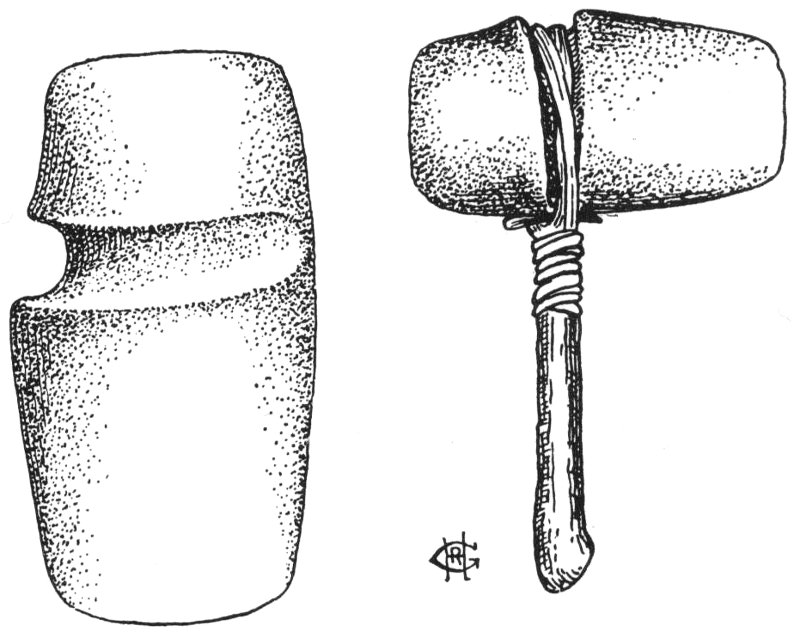 Putting a groove on a Stone Hammer was really a very important step in human development, for it made of the tool an actual piece of personal property, which the owner would want to carry around with him as he moved from place to place and which, perhaps, would be handed down from father to son.
