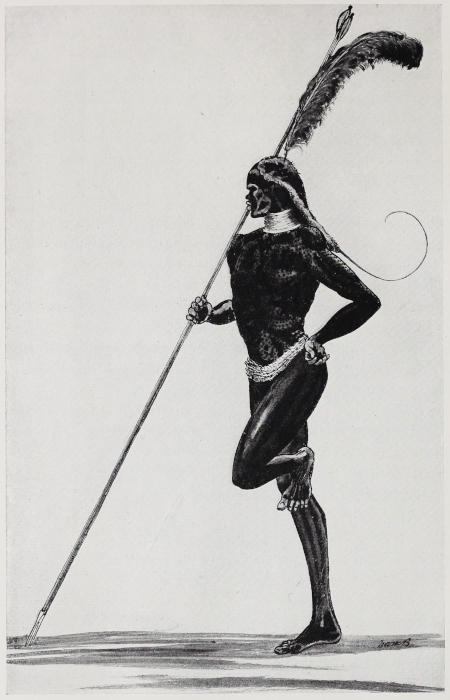 On the way home I stopped with a spear point almost touching my shirt front. The cheery fellows with me had planted their spears in the buffalo runs pointing in the direction from which they thought the buffalo might come—and extraordinarily difficult they were to see, presented, as they were, point on.
