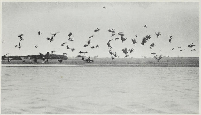 At the time of our up-stream journey the Egyptian goose was also breeding. On every sand-bank there were scores of ganders, while the geese were hidden away in the vegetation, sitting on their nests. These we found, but always with great difficulty, so well were they hidden.