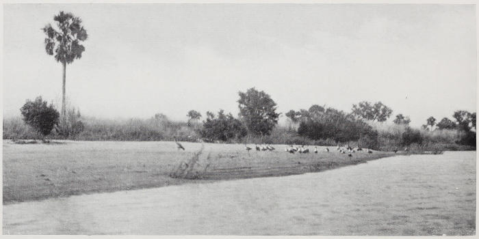 Nothing happened. In the morning as we drew out a young water buck was shot for food for the boys—we whites preferred teal. While on the subject of teal I would like to say that we never tired of these birds. We ate them stewed at regular meal times, and we ate them roasted on the spit between meals, cold. We ate them not as we do here, a mere slice or two from the breast; but we each ate one or two whole birds at a sitting.