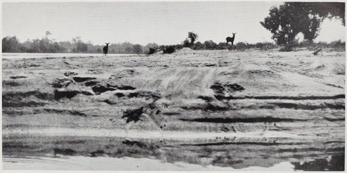 Early on the following morning W. and I separated, he taking one bank while I took the other. I tracked a large herd back from the river for about five hours’ fairly slow going, as the tracking was difficult. Dry season tracking is difficult because the ground becomes so hard, also because all the old tracks remain, as there is no rain to obliterate them.
