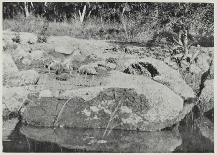 One day we saw ahead of us what appeared like pure white trees. When we drew near we saw that the white on the trees was caused by a colony of egrets sitting on their nests, the surrounding foliage being covered with their droppings. A curious fact in connection with this colony was that when we repassed it on our way down-stream some six weeks after, white spoonbills had taken over the nests and were busy sitting on them, while their earlier occupants,[159] the egrets, were all over the sand-banks, teaching their half-grown progeny how to catch fish, etc.