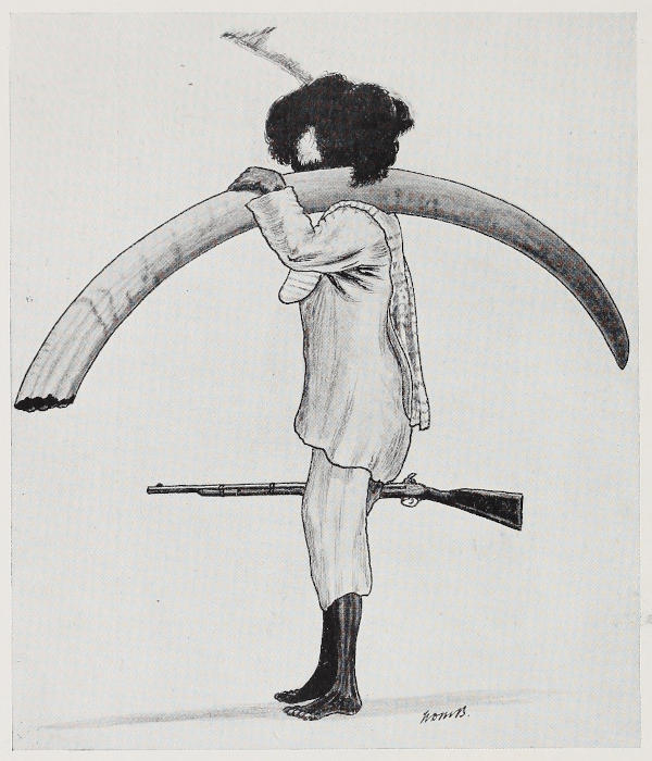 THE KILANGOZI OR HEAD PORTER WHO CARRIED THIS TUSK (148 LBS.) FOR SIXTY-THREE CONSECUTIVE MARCHING DAYS.