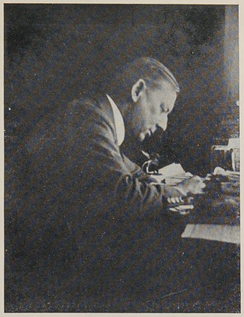 Philip Gibbs was educated privately and was an editor before he was 21. He was, in fact, only 19 when[17] he became “educational editor” for the large English publishing firm of Cassell at a salary of a hundred and twenty pounds a year. “With five pounds capital and that income, I married”—Agnes Rowland, daughter of the Rev. W. J. Rowland—“with an audacity which I now find superb. I was so young, and looked so much younger, that I did not dare to confess my married state to my official chief, who was the Right Honorable H. O. Arnold-Forster, in whose room I sat, and one day when my wife popped her head through the door and said ‘Hullo!’ I made signs to her to depart.
