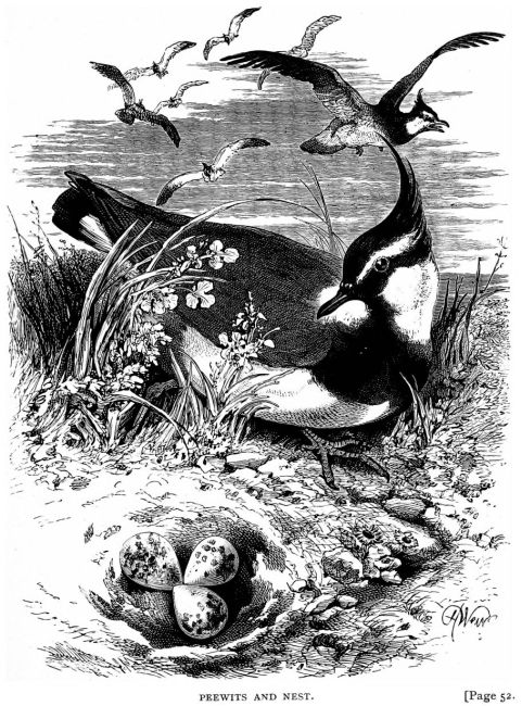 “There again you perceive them in the meadow, as they walk about with their elevated tails, looking for something eatable. By the hedge, afar off, are two boys, with a gun, endeavouring to creep up to a flock of plovers on the other side. But the magpies see them, for there are not many things which[118] escape their sharp eyes, and presently rising, they fly directly over the field, chattering vehemently, and the flock of plovers on this take wing, and the disappointed young sportsmen sheer off in another direction.”