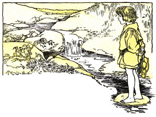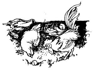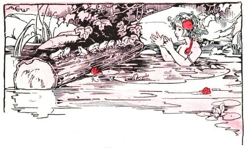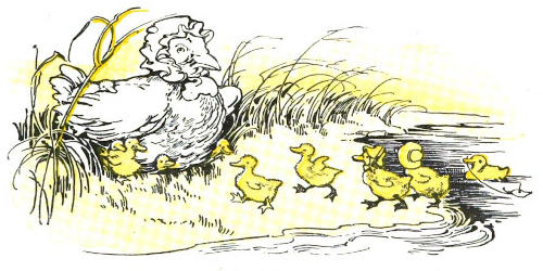 “How beautiful and white her feathers are,”[7] he thought. “It must be because she washes them so much. Why, she almost lives in the water. If I should wash my feathers all day long, they might get white, too. I will try it.”