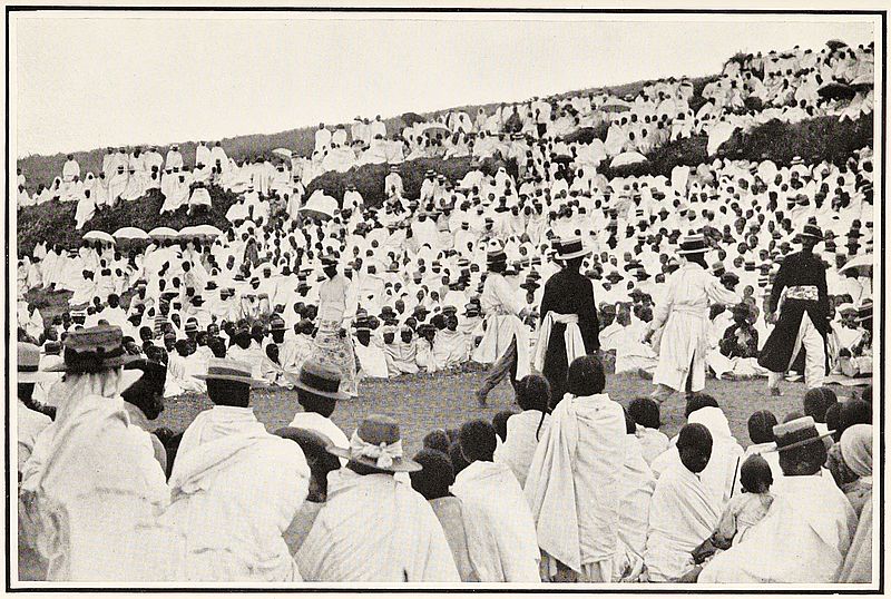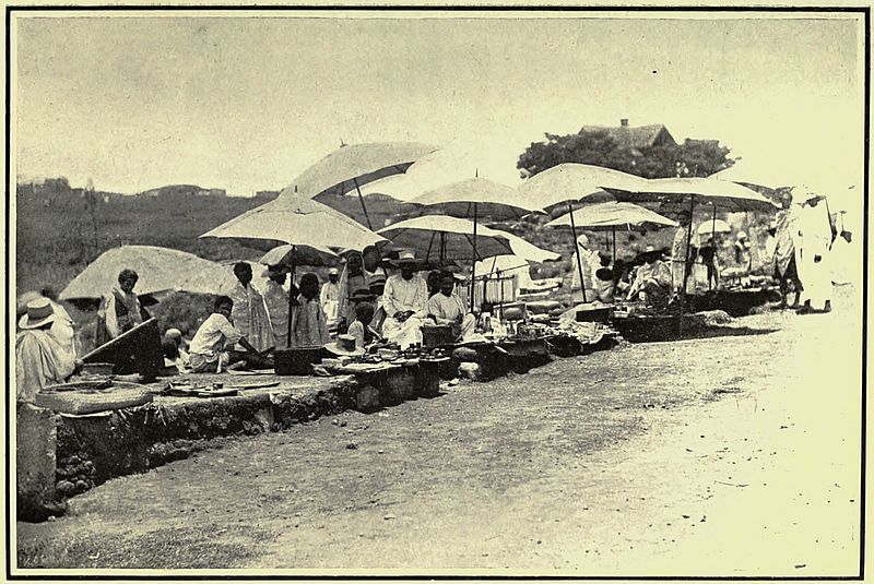 On Monday morning we fairly started on our journey away from mission stations and Europeans. Two hours’ ride brought us to a large market where hundreds of people were assembled. We were set down and, before we knew what our men were about, were left almost without a bearer, it being too great a temptation for our fellows not to go into the thick of a market; and it was some little time before we could get hold of them to carry us into the village near the place. All this day’s journey was up a long wide valley enclosed by lines of hills, which gradually approached as we proceeded; and our evening halt was in a village covered with a layer of finely powdered cow-dung, although the village chapel, our usual inn on such journeys, provided a fairly comfortable resting-place for the night.