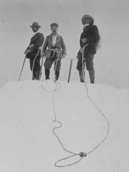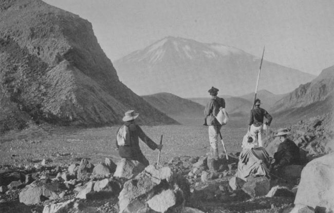A Glacier Tramp—The Penguin Rocks—A Fairyland Grotto—Second Breakfast and some Reflections—Rock Avalanches—Beautiful Schrunds—A Sharp Arête—Scaling a Precipice—Zurbriggen’s Axe—A Difficult Ice Slope—A Problem solved by Rubber—On the Summit Ridge—A Splendid Panorama—The Descent—The Bivouac again |