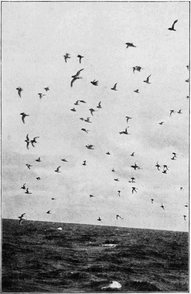 The old birds enjoy play, while the young ones are solely engaged in satisfying the enormous appetites they have when growing. While the Nimrod was frozen in the pack some dozens of them disported themselves in a sea-pool alongside. They swam together in the duck fashion, then at a squawk from one they all dived and came up at the other side of the pool.