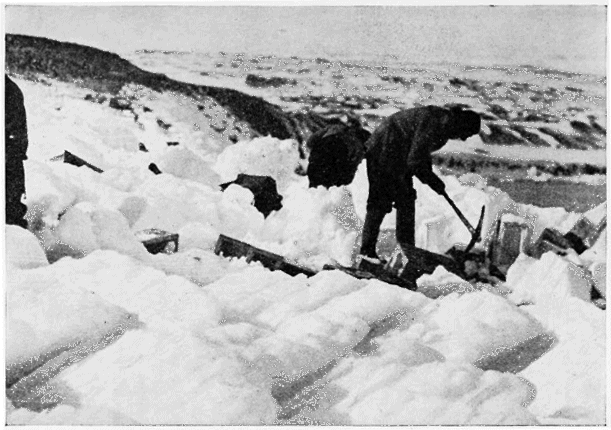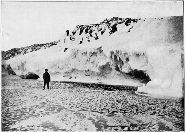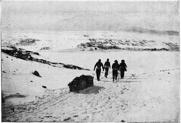 First of all, I wished to round Cape Armitage and pick up some geological specimens and gear that had been left at Pram Point, but young ice was forming over the sea,- 234 - and it was evident that we had scarcely an hour to waste if we were not to spend a second winter in the Antarctic.