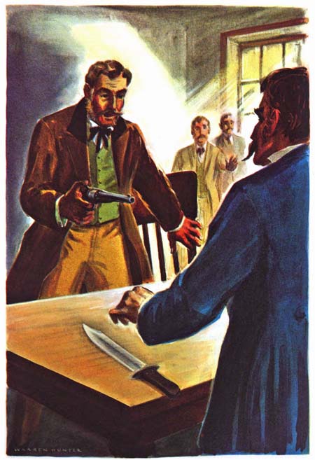Coolly enough, the lawyer again rose, pulled out his long Bowie knife, laid it on the table, and said: “This is the statute that governs in such cases.”