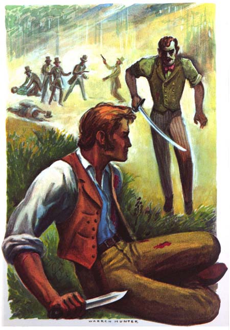 In the dead of the night they were accompanied to the appointed room in a deserted house. They entered. The door was locked. The seconds outside listened for long minutes without hearing a sound. Then they heard a scuffle, accompanied by a click of steel, a moan, and a voice crying, “Come in.” By the light of a lantern Bowie was seen standing in a pool of blood, the other man dead.