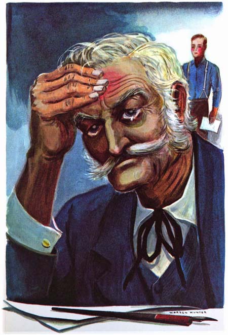“Upon my speaking to him at the expiration of the second hour he again said, ‘Go out once more and come back in another hour.’ Again I went out and watched. The old man sat there, his frame sunken, immobile, his only movement[53] the constant rubbing of his brow with the fingers of his right hand.