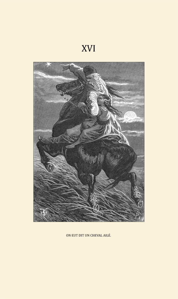 Le cavalier rend la main à son cheval, poursuit sa route et disparaît, comme un homme trompé dans son attente. Maroussia n’a été pour lui qu’une ombre entrevue sur sa route.