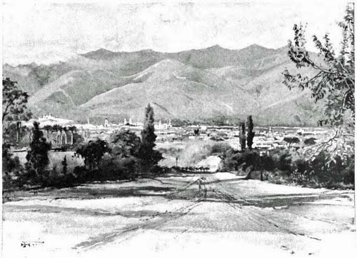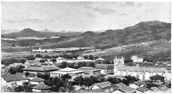 [244]You pass through clouds on your way up that leave the trees and rocks along the track damp and shining as after a heavy dew, and at some places you can peer through them from the steps of the car down a straight fall of three thousand feet. When you have climbed to the top of the mountain, you see below you on the other side the beautiful valley in which lies the city of Caracas, cut up evenly by well-kept streets, and diversified by the towers of churches and public buildings and open plazas, with the white houses and gardens of the coffee-planters lying beyond the city at the base of the mountains.