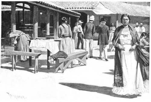 [248]Even without acquaintances among the people of the capital there are enough public show-places in Caracas to entertain a stranger for a fortnight. It is pleasure enough to walk the long, narrow streets under brilliantly colored awnings, between high one- and two-story houses, painted in blues and pinks and greens, and with overhanging red-tiled roofs and projecting iron balconies and open iron-barred windows, through which you gain glimpses beyond of cool interiors and beautiful courts and gardens filled with odd-looking plants around a splashing fountain.