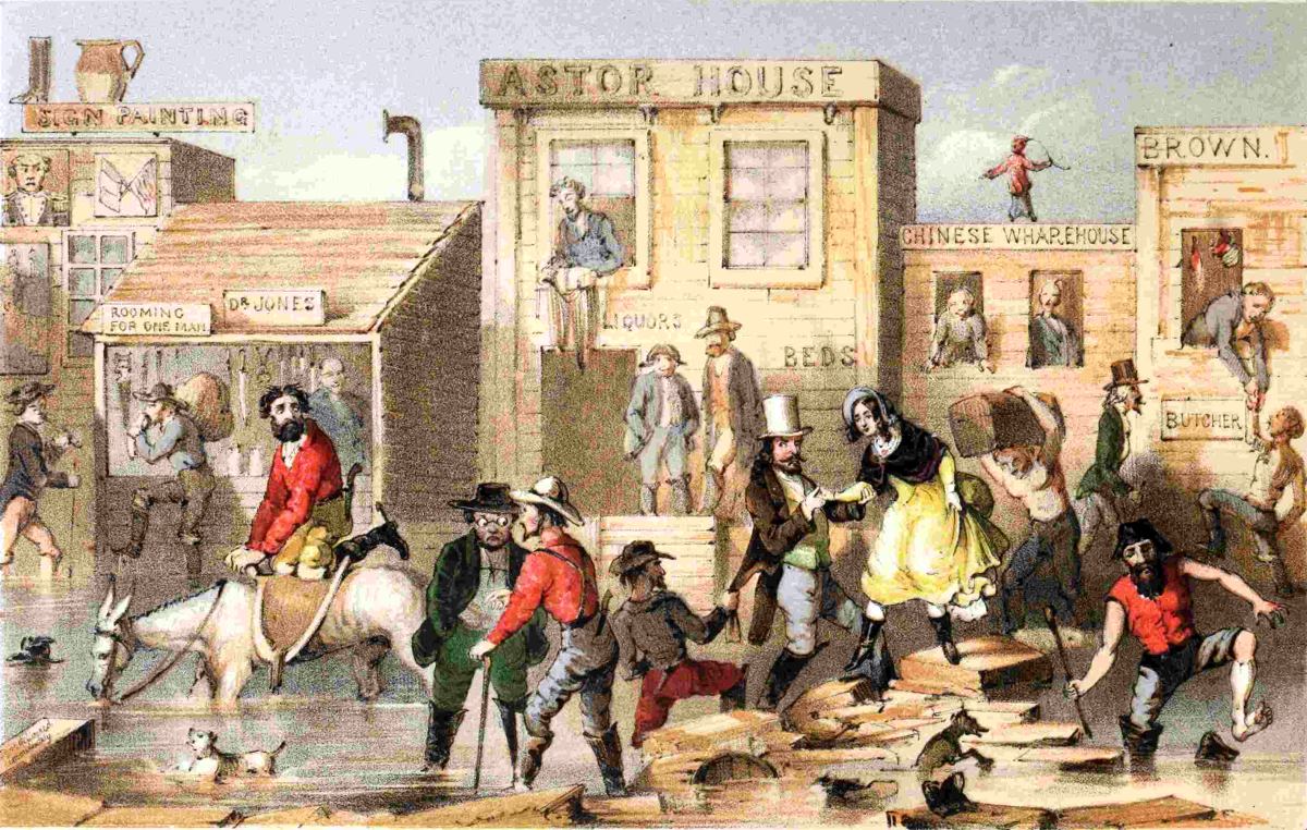 The vast blocks of brick houses that had risen on every side in San Francisco looked so very new and red that, the streets being filled with empty packing-cases, it seemed as if the city had been sent out piecemeal, packed in shavings, and put together like a box of toys.