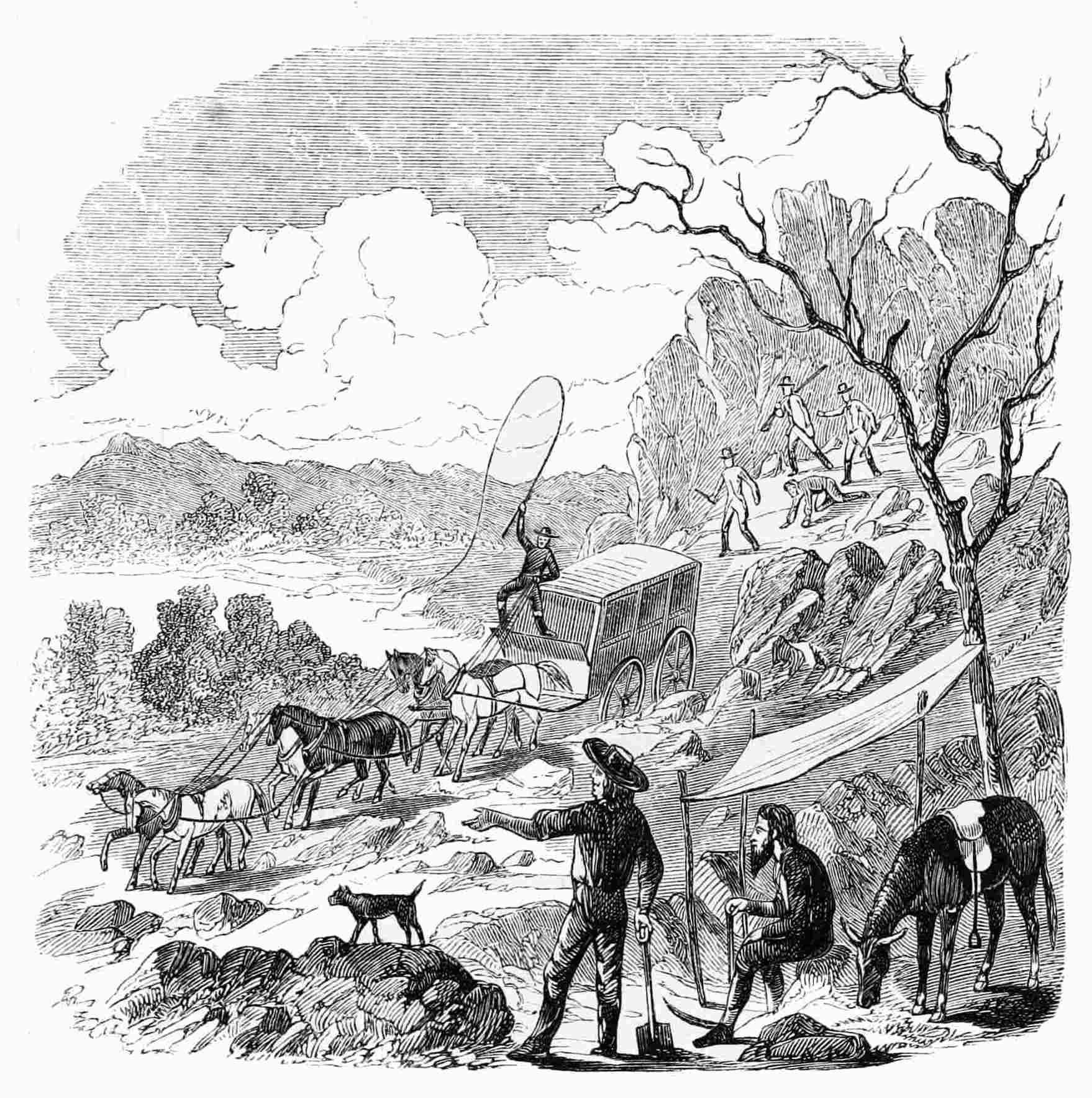 On the upper portions of the Carmello, in the county of Monterey, gold is also found, in the immediate vicinity of the rancho Tulecita. Farther to the south-east, near the head waters of the creek, it is also found on the tributaries of the main stream that flow from the western ridge of these mountains. On the Francisquito, a tributary of the Carmello, coming from the south-west, and twelve miles from the coast, it is also found near the house of Barondo. Three or four Mexicans were working with the battea at the time I passed that ranche. The serpentine rocks are largely developed on the east flanks of the granite ridges, and from their course they may be considered as forming the northern part of a series which occurs at the Mission San Antonio, fifty miles south.