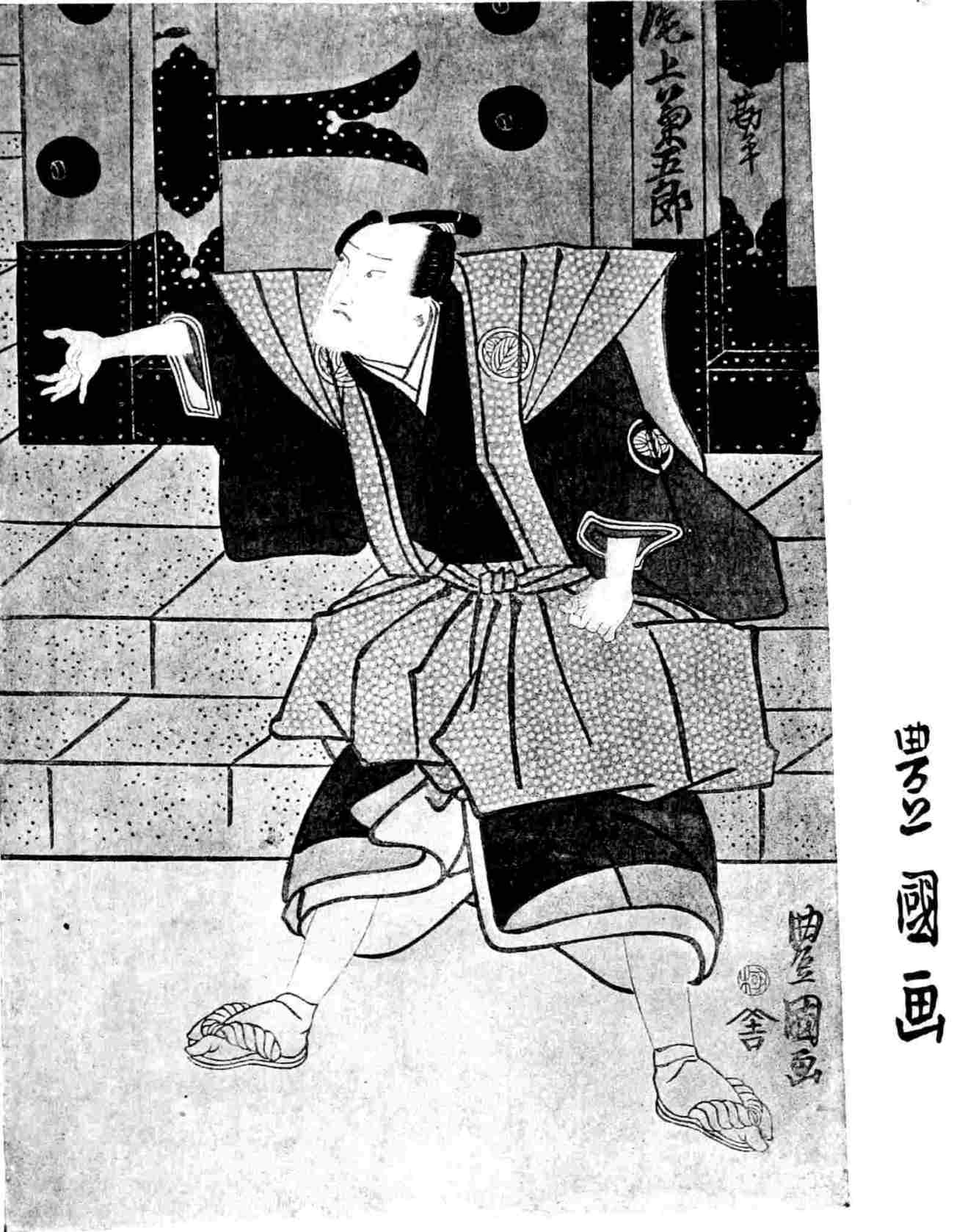 Genroku was the acme of the age of chivalry. Its tales of deadly duels and fierce vendettas are the delight of the nation. The history of the Forty-seven Ronin equals any mediæval tale of bloodthirsty vengeance and feudal devotion. This Japanese vendetta of the seventeenth century is still re-enacted upon the stage, and remains the most popular drama of the day, and the actor designers of Torii ever delighted in it as a subject for illustration. A brief outline of the story may be of interest and serve to recall its charming interpretation by Mitford.
