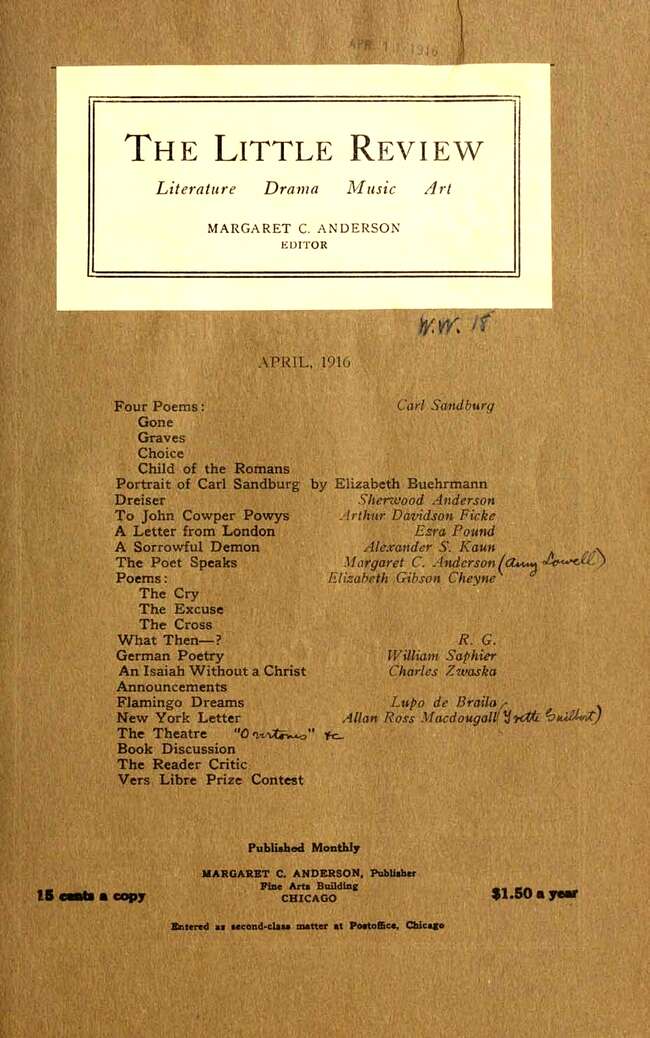 Title: The Little Review, April 1916 (Vol. 3, No. 2)