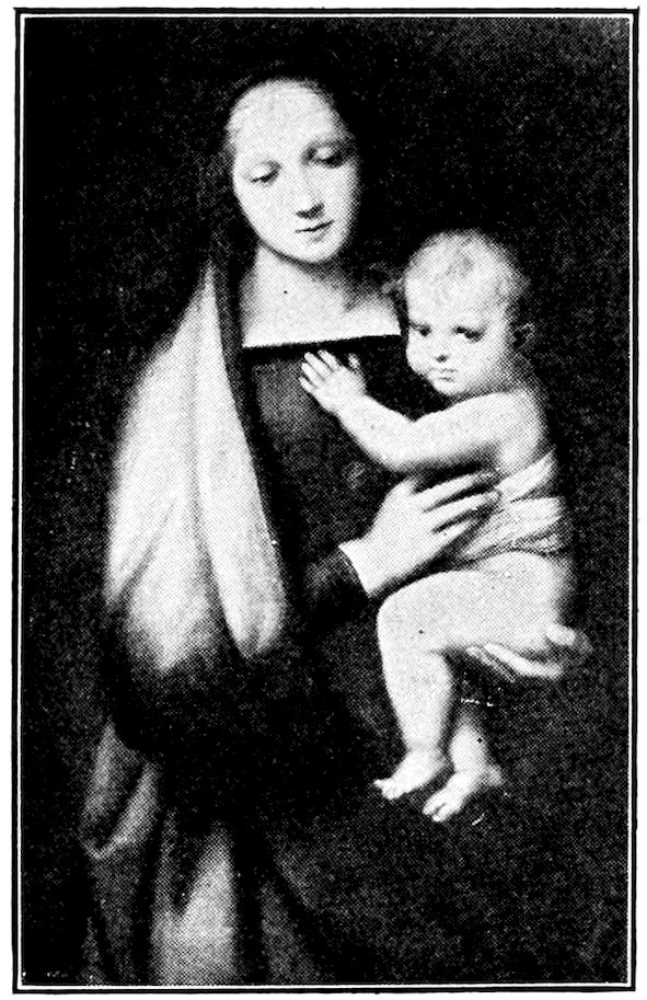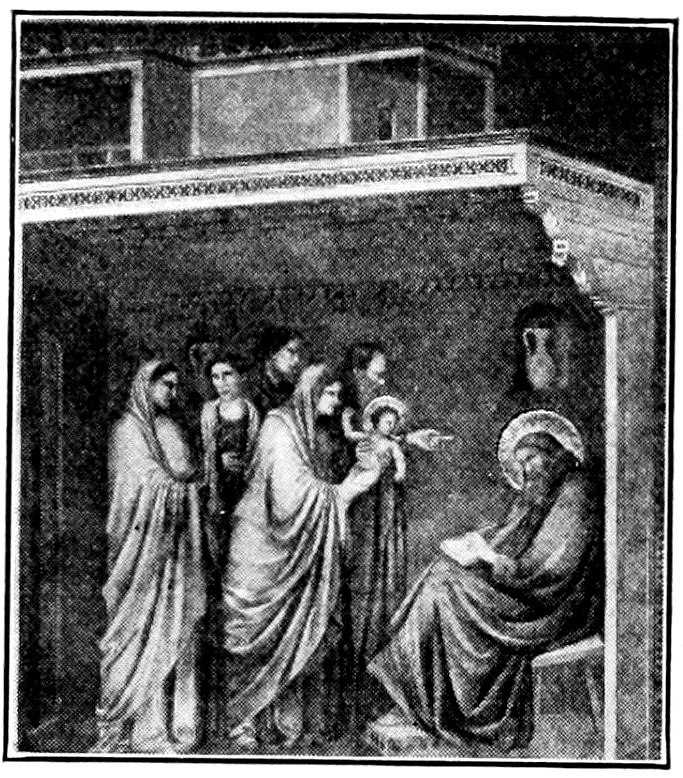 To recapitulate, there were three ways, all imperfect, open to a young and progressive painter who like Giotto di Bondone was forming a style about the year 1300. He might with the Sienese evade the issue of passion and naturalism, choosing for gracefulness, he might try over again the great adventure of his master Cimabue, endeavoring to bring emotion into the old unfit forms, or he might, like Pietro Cavallini, let emotion take care of itself and work academically towards better structure, drapery, light, and shade. His choice was absolutely momentous for modern painting, and I want you to feel that the issue was quite consciously and vividly before him, for he had spent much of his youth as a humble assistant in the basilica at Assisi, where frescoes in the vehement Tuscan manner of Cimabue and in the dignified Roman style of the Isaac Master were being painted side by side. His decision was to combine the merits of the two manners—to seek, like his master, sincerity and depth of emotion, but to embody it in the new and nobler forms of the Roman school. This decision virtually fixed the character of Christian art in Italy—it was 19to be warm and humanistic, but it was to revive much of that abstract nobility which old Rome had inherited from Greece. Thus Italian painting at the outset took a classic stamp which when true to itself it has never lost. In fundamental ideas of beauty, there is no real difference between Giotto, Masaccio, Leonardo da Vinci, Raphael, Titian, Michelangelo.