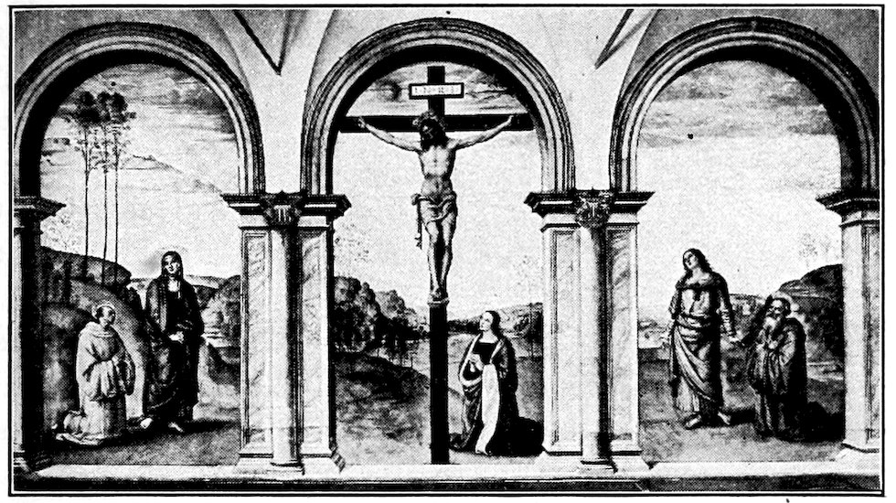 The Florentine ideal of Mass and Emotion—Its Humanism—The City of Florence about 1300—The Position and Methods of the Painter—The General demand for Religious Painting—Accelerated by the religious reforms of 1200, and changed in character—Insufficiency of the current Italo-Byzantine Style—Experiments towards a new manner: Duccio and the Sienese, Cimabue, Cavallini and the “Isaac Master”—Giotto—Immediate followers of Giotto, Andrea Orcagna and the return to sculptural methods—Later Panoramists, Andrea Bonaiuti and the Spanish Chapel.