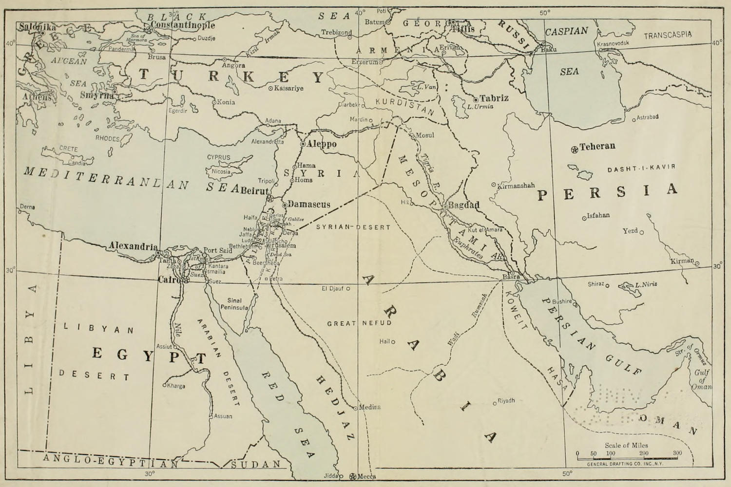 The French have a mandate for Syria, as the British have for Palestine, and the boundaries of both regions have been redrawn. Damascus is included in the territory under French control. Syria is nominally independent, and the natives have not been altogether satisfied with the way the French have governed their country since the Sultan’s power was overthrown.