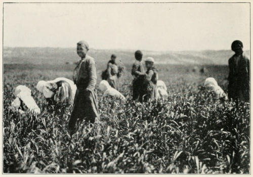 The new rulers of the Holy Land hope to restore agriculture, which fell into decay under the Turks, chiefly on account of the excessive taxes on the farmers. Local meetings of natives have been held throughout the country, to find out what the farmers needed most, and to put them in touch with sources of supply. There was found to be a great shortage of farm implements and machines, such as mowers, horse rakes, and other equipment. To encourage the natives, the sum of two million[284] five hundred thousand dollars was set aside to be loaned by the Anglo-Egyptian Bank of Palestine for improvements on their lands. Within three years after the war Palestine agriculture produced more than two million bushels of wheat, one million bushels of barley, one and one quarter million bushels of millet, six thousand tons of grapes, and one hundred and fifty thousand gallons of olive oil. The number of sheep and goats was estimated at more than a quarter of a million of each. Figs are grown in upper Galilee, but not so many as will be the case when shipping facilities are provided. For the second year under British control, the import trade of Palestine amounted to not quite twenty million dollars, most of which was with Great Britain and Egypt. The people import foodstuffs such as rice and sugar, and buy a great quantity of cotton goods.