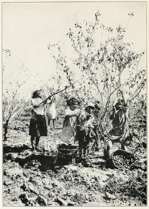 Another important crop of the region about Smyrna is the fig, which grows better here than in almost any other part of the globe. More than three hundred thousand camel-loads are raised in some years, and they are shipped all over the world. The trees begin to bear in their sixth year, and are at their best ten years after planting. The figs ripen about the first of August, and[270] when fully matured fall to the ground. They are dried in the sun, then packed in bags for the market.