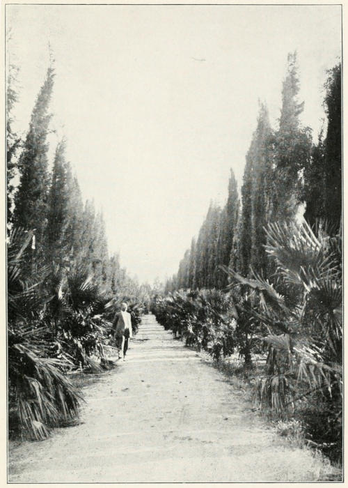 The British are working on a vast scheme of reforestation in connection with their irrigation plans. They are encouraging a project for building a dam in the River Jordan, above Tiberias and the Sea of Galilee, which will furnish power for irrigation pumps and light and energy for all Palestine. Great nurseries have been established at Gaza, where Samson threw down the temple of the Philistines. In one operation, more than one hundred thousand timber trees and ninety thousand fruit trees were set out.