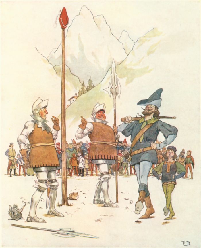[Transcriber's note: William Tell Told Again is two children's books in one. One is a picture book--16 full-color illustrations by Philip Dadd described in verse by John W. Houghton. The other is a humorous novel by P. G. Wodehouse, based on the picture book. The novel has a lengthier storyline, a more intricate plot, and more characterization. The bound volume intermingled the picture book with the novel, illustrations and poems appearing at regular intervals. Most pictures and verses were distant from the page of the novel that they reflected.