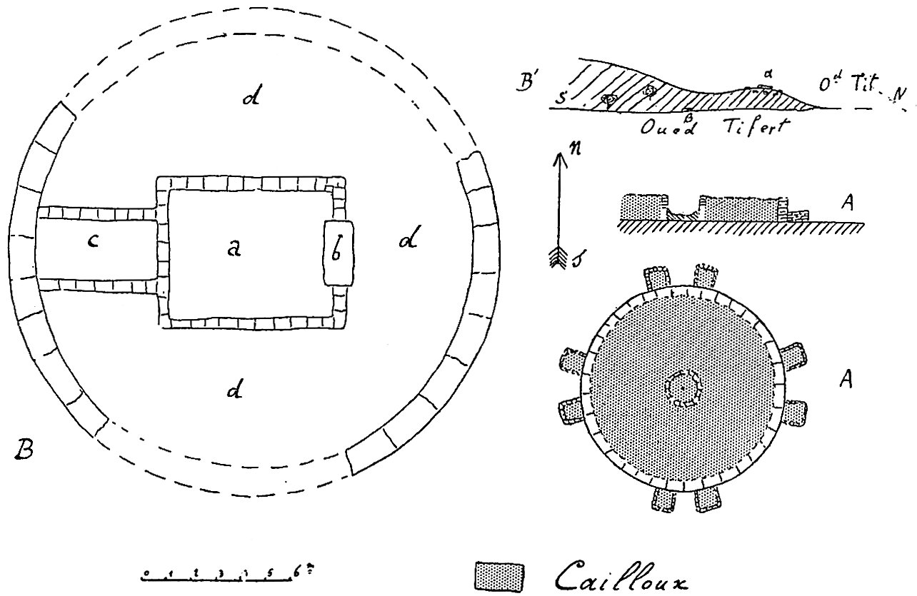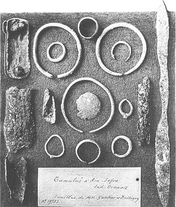 I. Les tombeaux (redjems), 60. — Terminus ad quem et a quo, 64. — Aïn Sefra, 64. — Beni Ounif, 66. — La forme, 68. — Redjems du Hoggar, 71. — Provinces orientales, 75. — Autres monuments lithiques, 83. — Conclusion, 86.