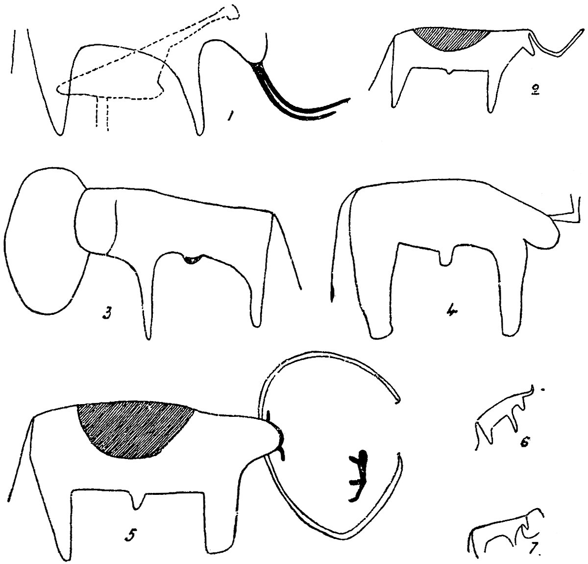 II. Gravures rupestres, 87. — Station de Figuig, 87. — Station de Barrebi, 94. — Station d’Aïn Memnouna, 99. — Station de Hadjra Mektouba, 100. — Stations des oasis et du Tadmaït, 101. — Stations des plateaux touaregs, 102. — Station de Timissao, 112. — Stations Ifor’ass, 113. — Stations du Hoggar, 114. — Stations de l’Aïr, 115. — Stations du Niger et du Sénégal, et Inscriptions tifinar’, 116. — Conclusions générales, 117.