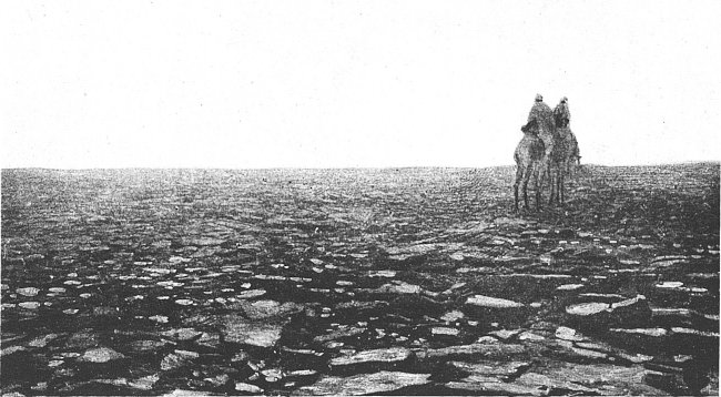 Une plaine aussi parfaite est nécessairement d’alluvions ; et le reg en effet est d’origine alluvionnaire. Cette origine pourtant ne se décèle pas au premier coup d’œil. De façon à peu près constante le sol est couvert de gravier, gros ou menu, disparate, en couche plus ou moins épaisse ; on a l’impression d’une allée de jardin, élargie démesurément jusqu’au bout de l’horizon. Mélangées au gravier, et posées sur le sol en vrac, on trouve des choses hétéroclites, pointes de flèches et haches néolithiques par exemple.