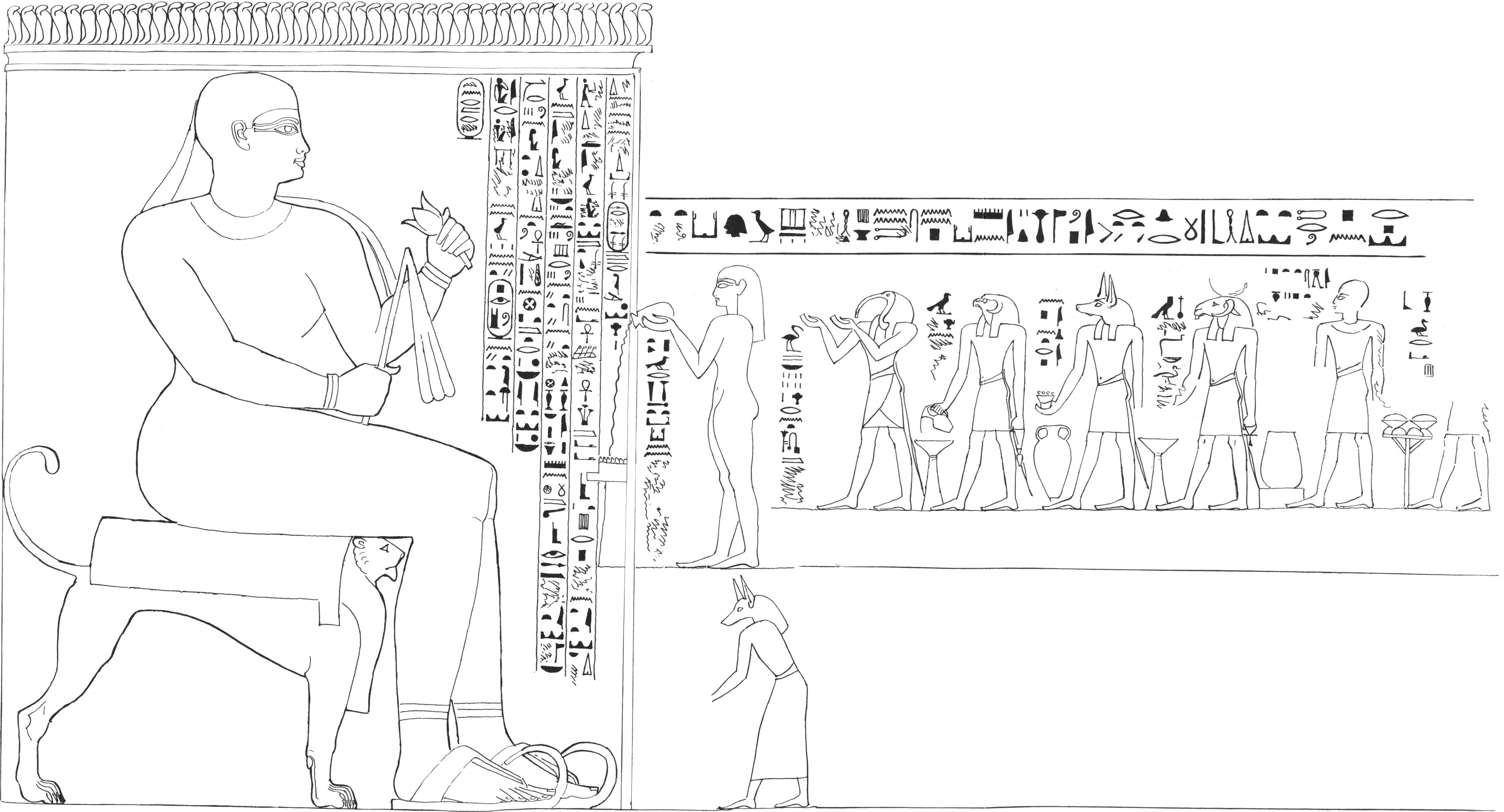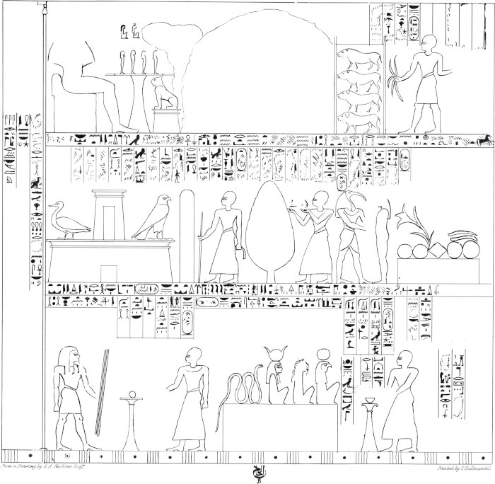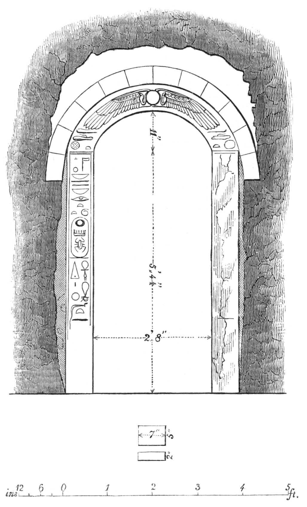[48]The names of these two kings occurring together at Semneh, where Thothmes is represented worshipping his ancestor Osirtisen as a god, is confirmatory of the accuracy of the supposition that these are the names in the tomb at Doshe.