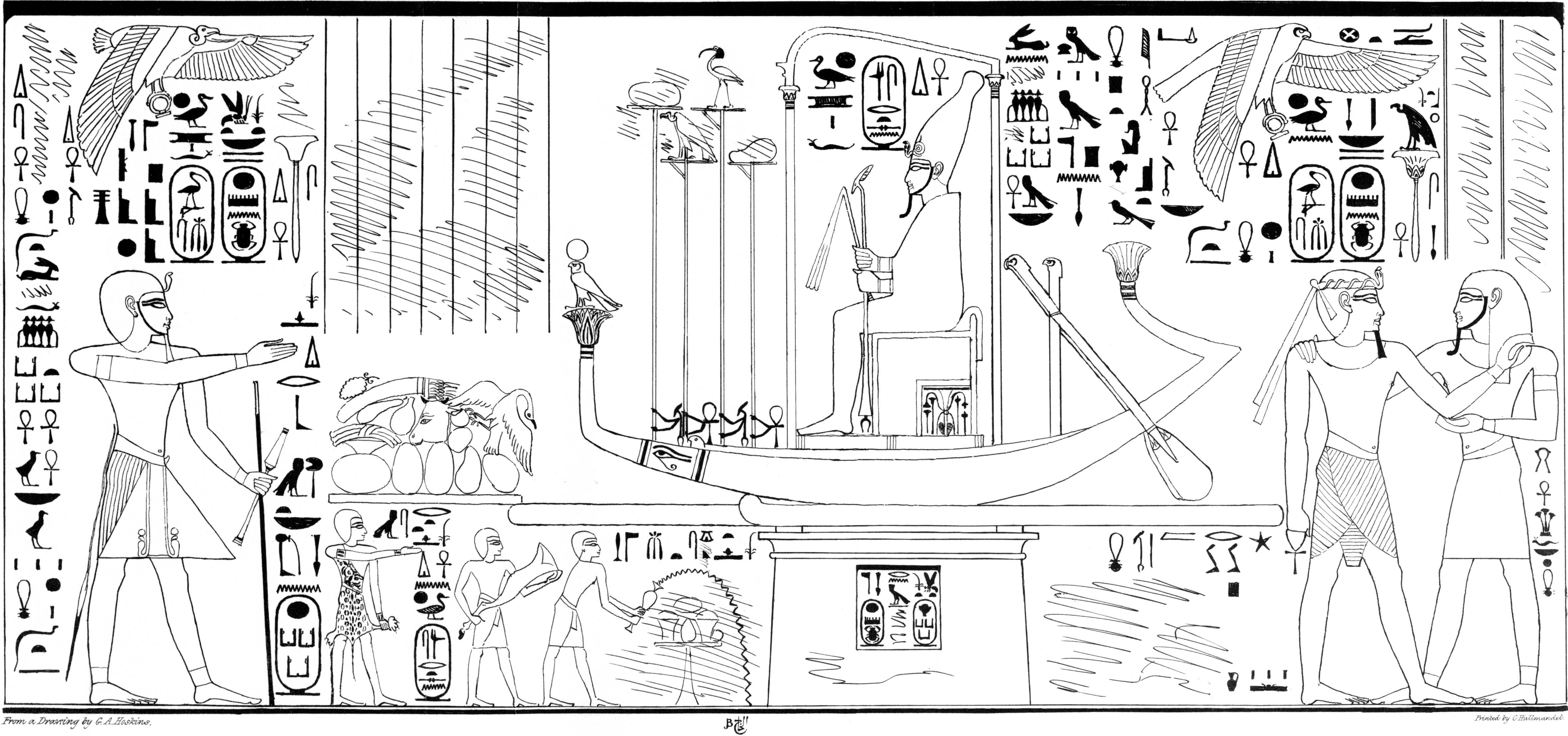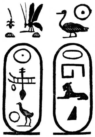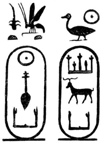 Meroe. (See Plate X.) There is a fragment of a figure of a god, with the hieroglyphics before it; this is evidently the god Sebek, which, with the Greek termination, makes the Sevechus of Eusebius; but, although the name in the list and that of Eusebius and Africanus are made thus to agree with the name in the Bible, I have some doubts if Signor Rosellini is correct in the connection he supposes between the name of these hieroglyphics and the god Sevek; for the Ethiopians apparently wrote the name of that deity in the same manner as the Egyptians, and yet not one of the hieroglyphics used in writing the name of the god is employed in that of the king.