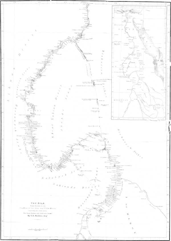 Map of the Nile from Assuan to the conflux of the Bahr El Abiad and the Azruk.